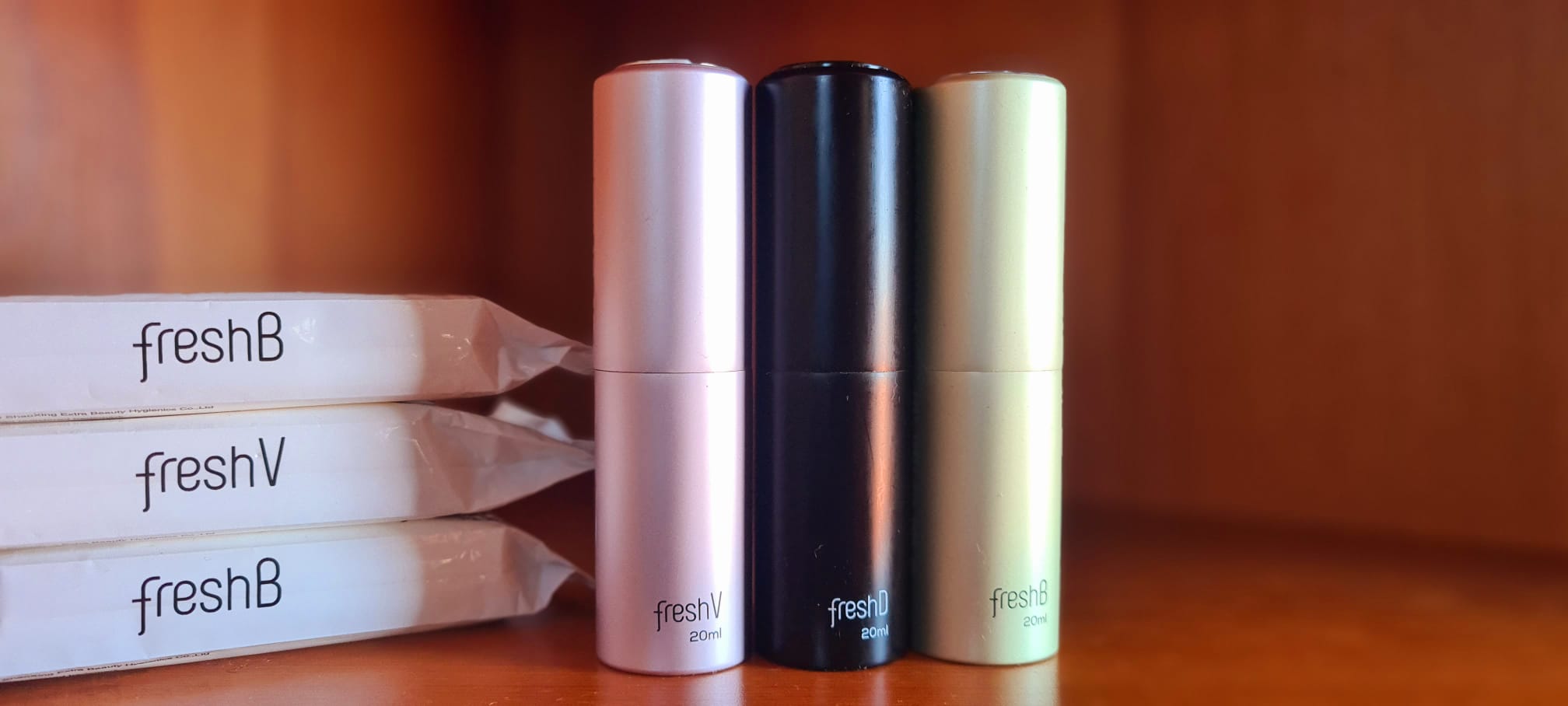 Introducing freshV, freshD, and freshB, designed with You in mind, offering an all-natural, chemical-free solution for Your intimate wellness and maximum freshness. Our regimen provides a gentle and rejuvenating experience for Your genital area, helping to reduce unwanted bacteria, odours, dryness, irritations, and chafing.